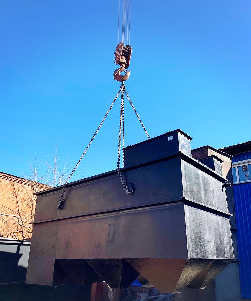 Установка «СВИРЬ» состоит из четырех технологических блоков, каждая из которых представляет собой горизонтальную цилиндрическую емкость с горловинами обслуживания, снабженную внешними патрубками подвода сточных вод, отвода осадка, отвода очищенных сточных вод, отвода промывных вод.