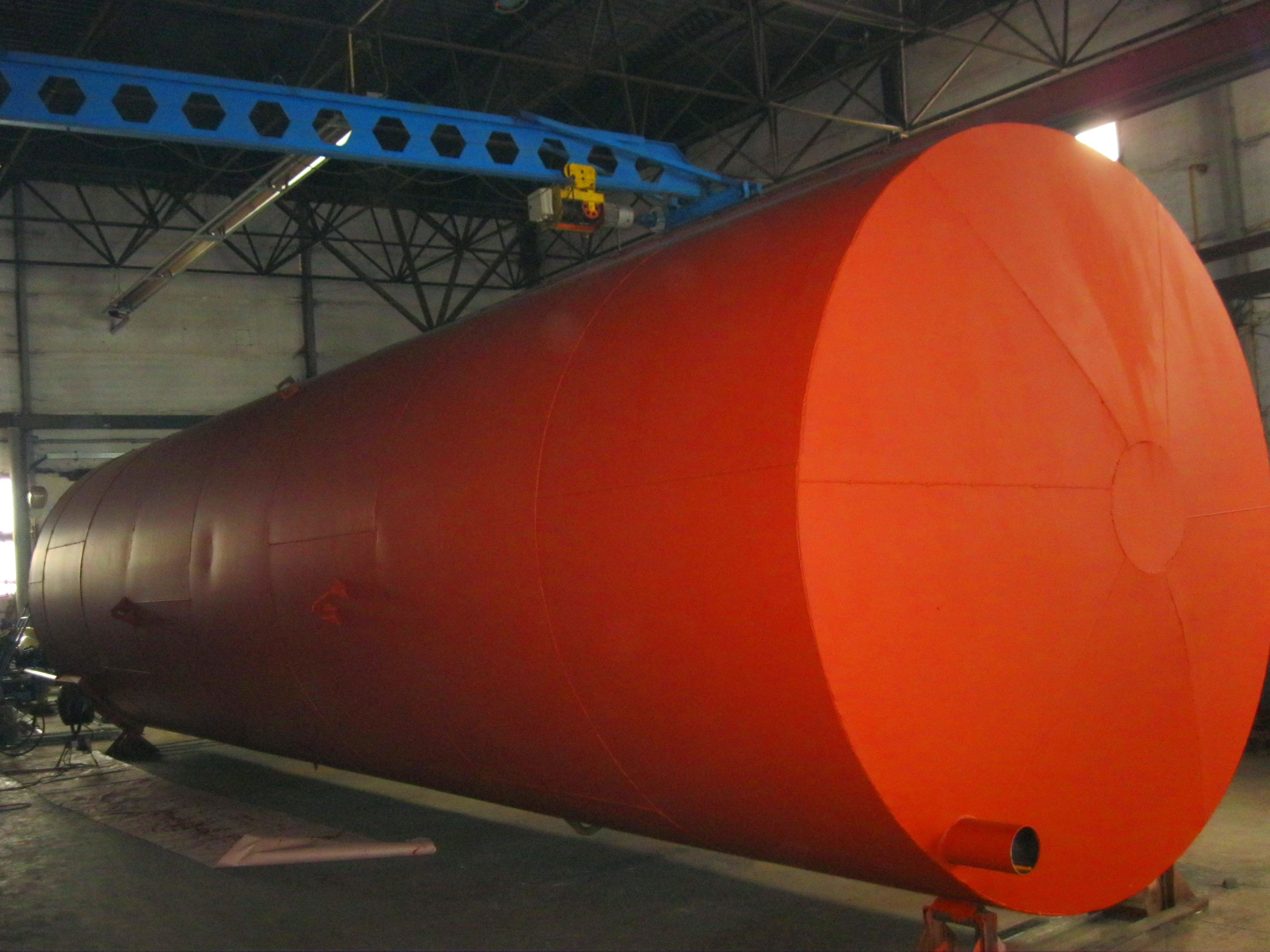 Корпус резервуара изготавливается из стального листа толщиной 5-6мм, марка стали 09Г2С с эффективным внутренним и внешним антикоррозионным покрытием. Цилиндрическая часть корпуса по всей длине имеет диафрагмы жесткости, препятствующие ее деформации под действием давления рабочей среды. Корпус резервуара оборудован монтажными петлями.